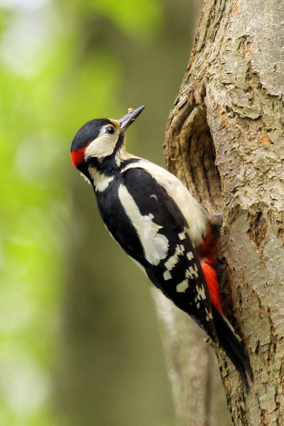 Shortly after, they abandoned the hole in favour of another in Bat Oak, leaving the original hole unattended. Two months later, the woodpeckers are in residence there and feeding chicks.